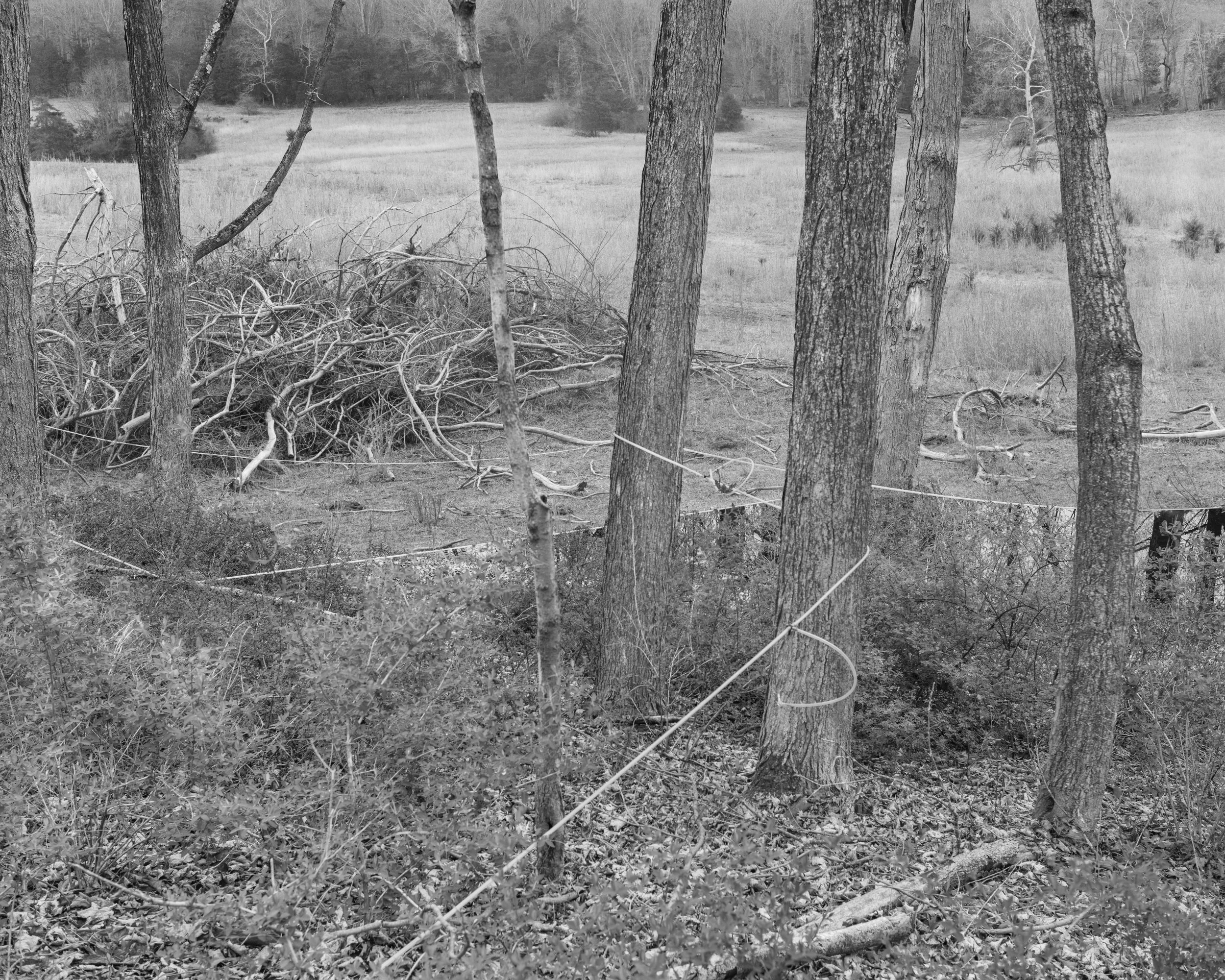 When I enter a landscape, where shallow ponds meet sloping pastures or kudzu vines swallow twisted ravines, I am absorbed into the relationships between these elements. My eyes trail the shadows cast by a tree, gnawed by a beaver, over a frozen pond and into an abyss of tangled bushes that writhe in a crowd of dark branches and hold my gaze in the distance. Landscapes marked by human incursion posess a similar allure; I forget myself, and focus instead on the extraordinary oddness of how a massive powerline, snaking through the faraway forest, is dwarfed by the stature of a spindly trunk. I am attracted to the coupling of empty lawn chairs and a gigantic puddle, invading someone’s manicured backyard and forcing them to build a footbridge to cross the water. My series of five photographs communicates the immersive qualities of landscapes, how I am provoked into connecting layers of space within a single place.